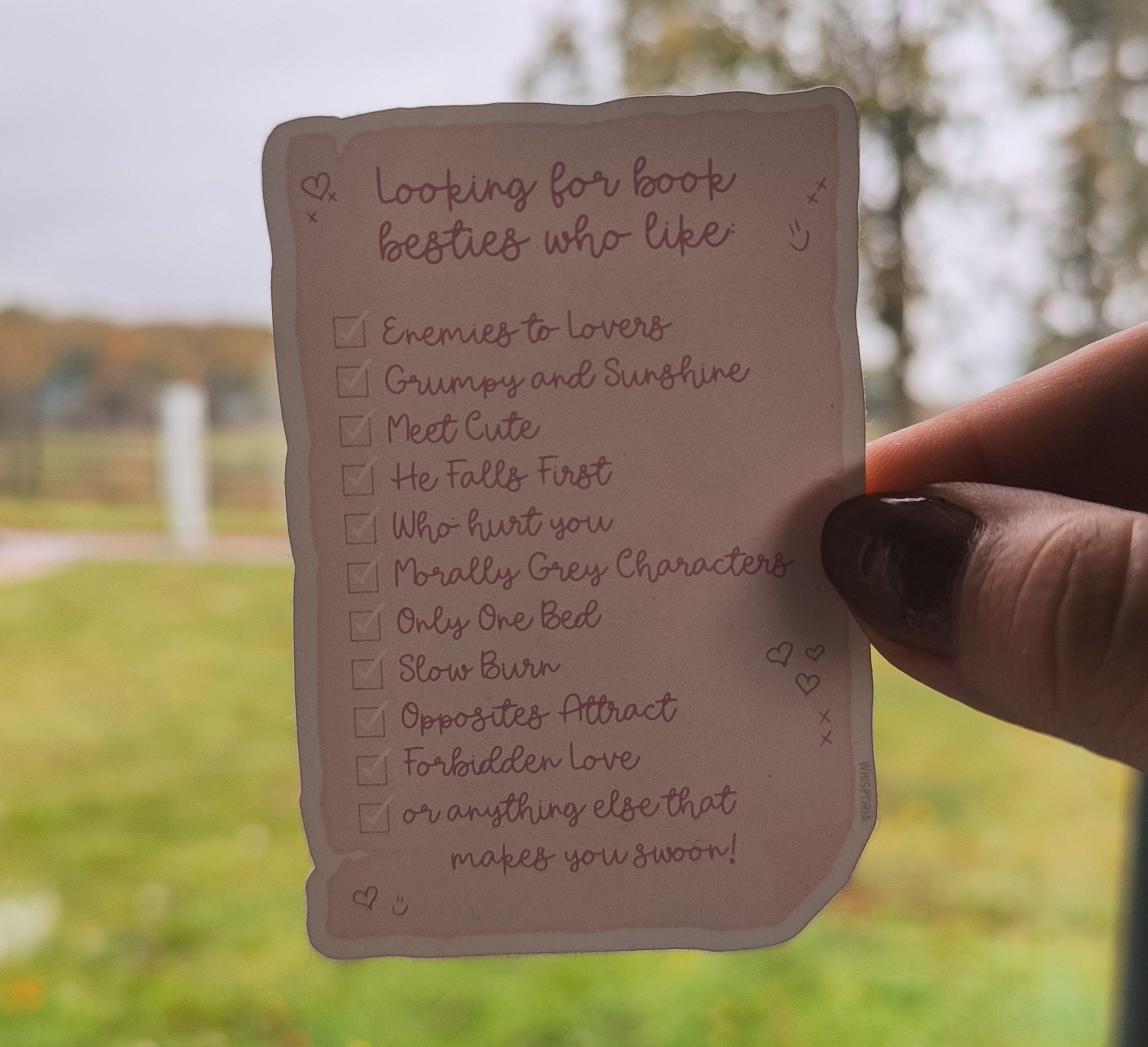 Looking for Book Besties Trope Checklist Vinyl Die Cut Sticker
