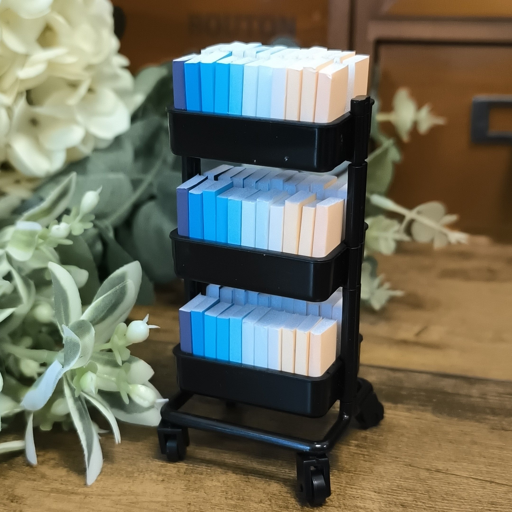 Teeny tiny 1:12 scale TBR Cart complete with colour themed books. The cart is black plastic and has moveable wheels, the books are handmade from...