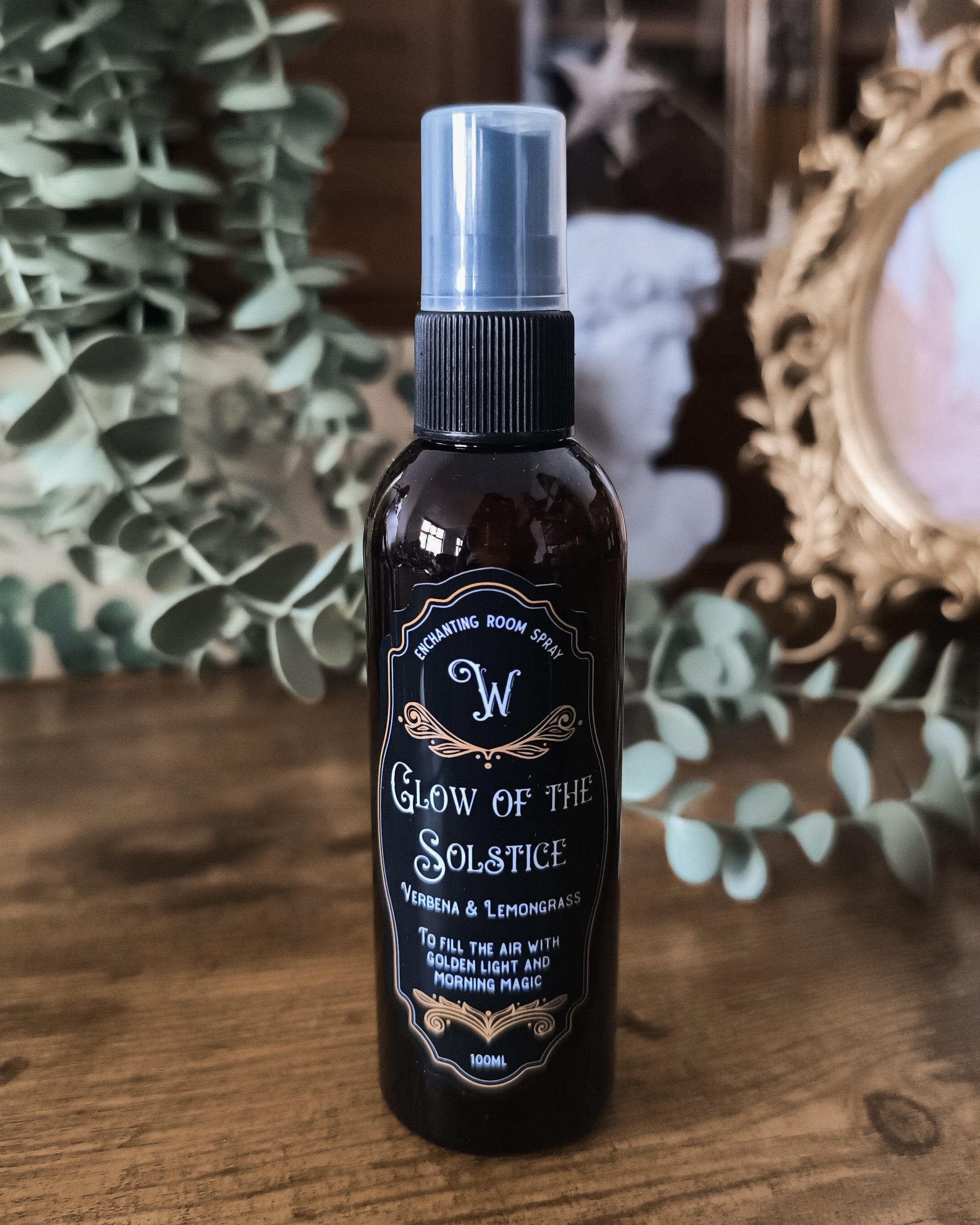 Glow of the Solstice is a scent like sunlight caught in a bottle. With bright verbena and zesty lemongrass, this room spray brings the feeling of golden mornings, fresh pages and the first breath of summer air.